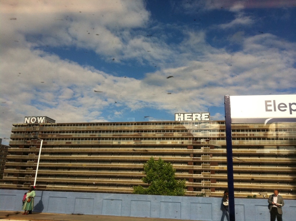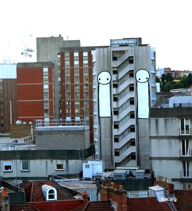 Once you start looking, it’s everywhere. There’s a long nosed Pinocchio on a stairwell in a forbidding estate I cycle through every morning and I used to love the ‘here’ ‘now’ on a big local housing block until it got graffitied to oblivion.
